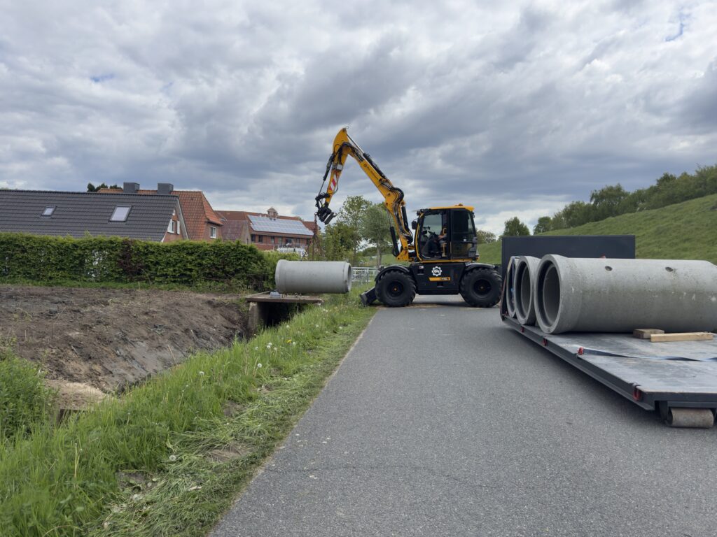 Endlich – die Genehmigung für die Überfahrt war da. Mit 80 cm starken Rohren wurde eine 6 m lange Zufahrt geschaffen, die Zugang zum Grundstück ermöglicht.
